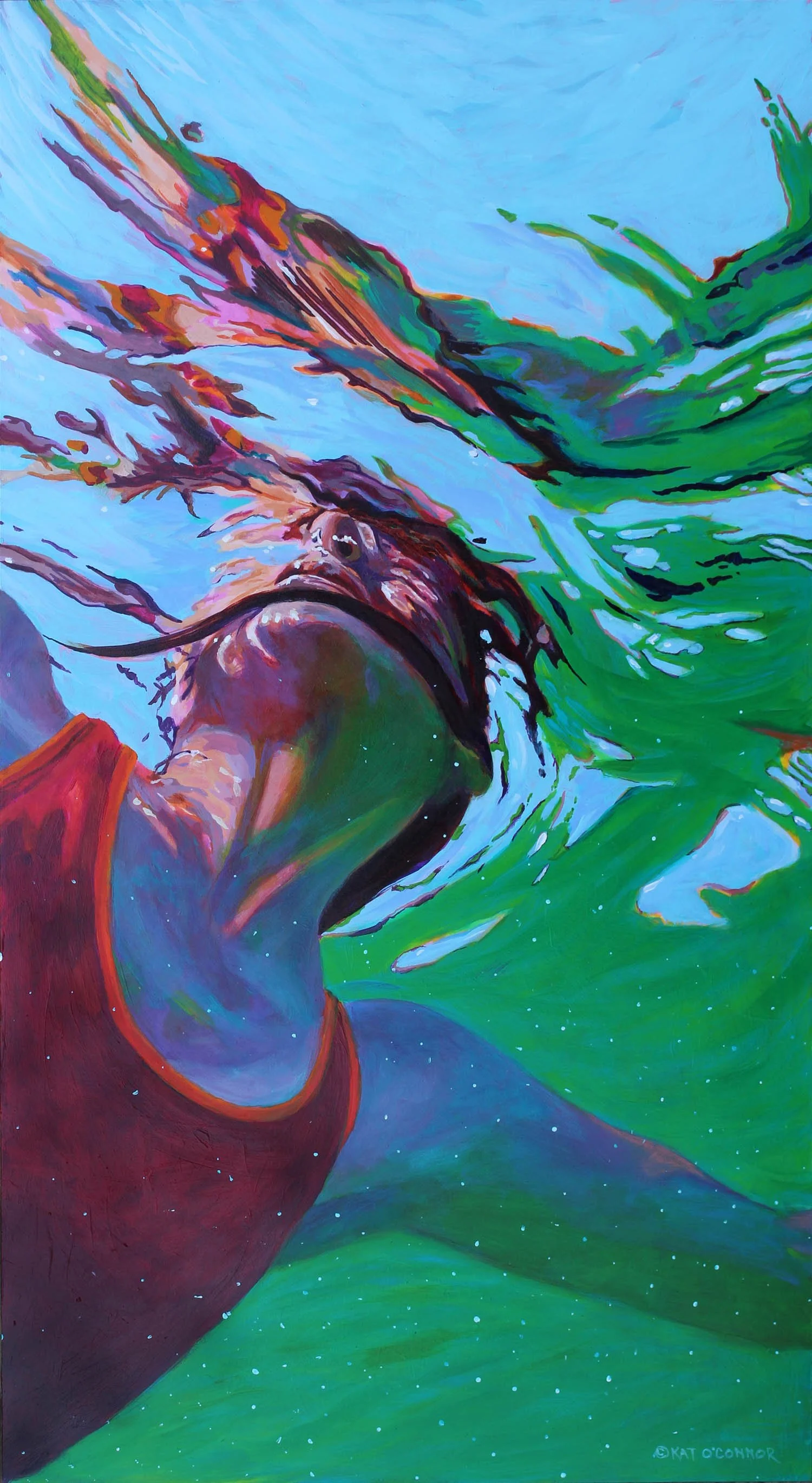For me, swimming is a metaphor for painting. The painter and the viewer enter the same space, but experience it in different ways. Some elements are sharp and specific. Some elements are abstracted and can be interpreted in multiple ways. Darkness might be water or the depths of space. Bits of light could be air bubbles or stars.